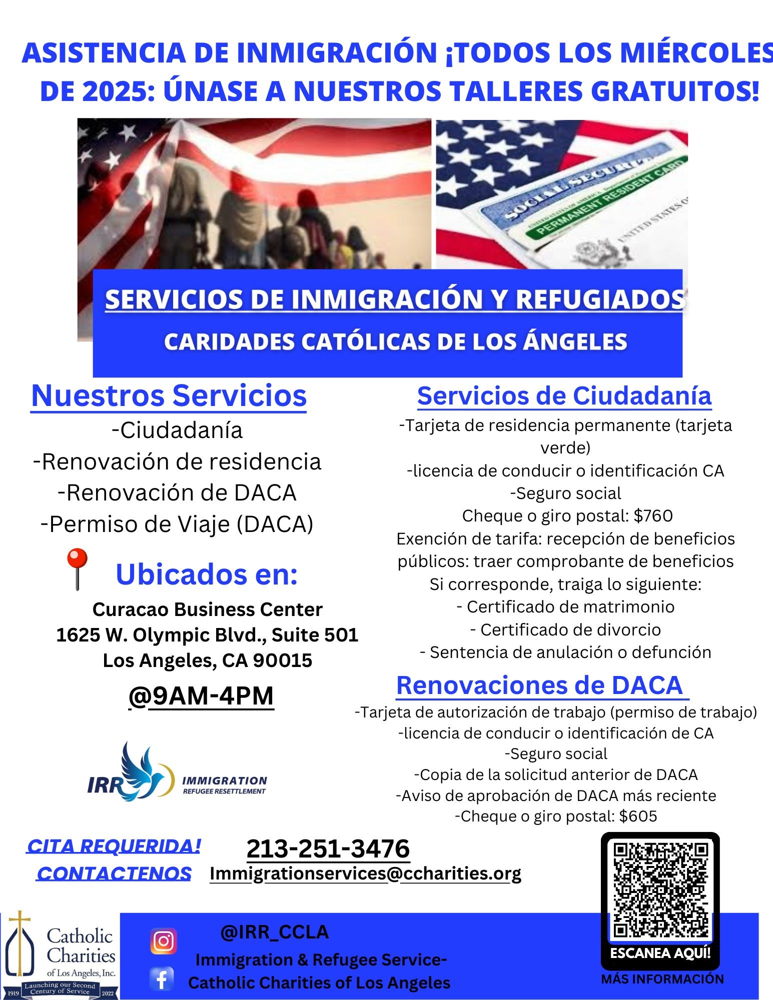 Todos los miércoles en nuestra Oficina Satélite: Asistencia con solicitudes de ciudadanía, renovación/reemplazo de residencia y renovaciones de DACA.