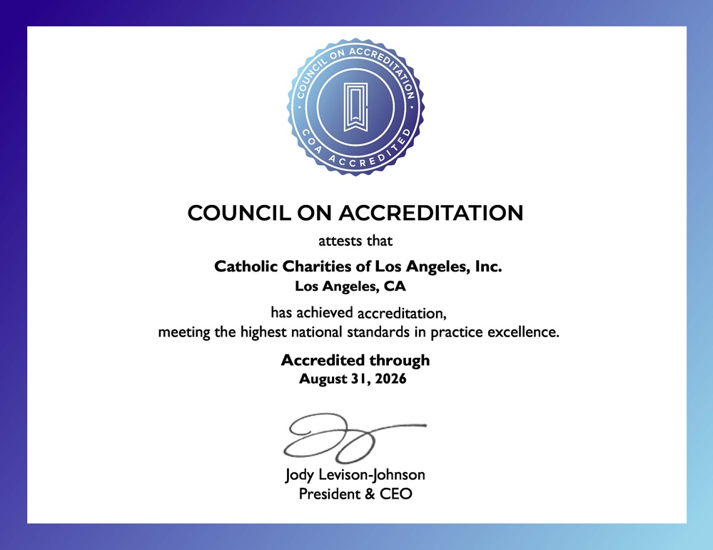 Catholic Charities of Los Angeles achieved accreditation from the Council on Accreditation (COA) meeting the highest national standards in practice excellence.